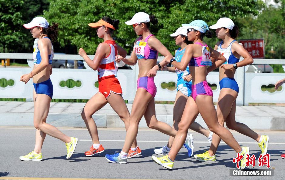 5月22日上午,由国家体育总局田径运动管理中心主办,江西省体育局、鹰潭市政府承办的2015年全国竞走大奖赛鹰潭站在“道教祖庭”、世界自然遗产地江西龙虎山拉开战幕,来自全国各地的100多名运动员参与了男子成年组20公里、女子成年组20公里团体、男子成年组20公里团体等多个项目的竞走赛事。赛场上,参与竞走的选手们挥汗如雨,时而齐头并进,时而疾步如风,赢得了现场观众的阵阵喝彩声。刘占昆 摄