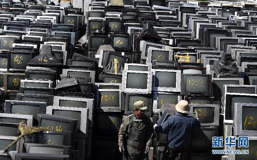 在山西省阳泉市天元循环经济园区,工人在搬卸废旧电视机(5月13日摄)。 中国国家发改委发布的数据显示,我国家用电器已经进入报废高峰期,每年理论报废家电量超过5000万台,预计到“十二五”末期,年报废量将达到1.6亿多台。同时,废旧电器又是“城市矿山”的重要组成部分,从中可以拆解和提取大量可用资源,变废为宝。记者在调研中发现,数量众多的废旧家电,除了一部分被回收进行无害化处理外,其余的多被超期使用或搁置,“沉睡”在居民家中,其中少部分被沿街走巷的商贩回购翻新后,再次流入市场。令人担忧的是,由于回收渠道不够通畅透明,加之人们缺乏对废旧家电回收的认识,造成大量报废的旧家电流向不明,带来安全隐患和环境污染。新华社记者 燕雁摄 图片来源:新华网