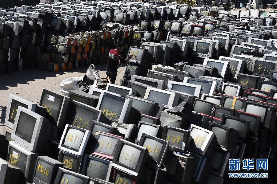 “如不将这些废弃电器电子产品交与资质企业回收处置,有害物质一旦溢出,就会对人体健康和环境安全构成威胁。”据天元循环经济园区的负责人介绍,由于拆解成本较高,同时面临小作坊小商贩的不规范竞争,虽然有国家专项资金的扶持,废旧家电拆解企业几乎是在微利或亏损状态下运行。在绿色环保、节约能源的大环境下,改变现存的废旧家电回收处理方式、建设正规有序的废旧家电回收市场势在必行。在山西省阳泉市天元循环经济园区,一名工人在废旧电视机上涂上编号便于统计(5月13日摄)。新华社记者 燕雁摄 图片来源:新华网