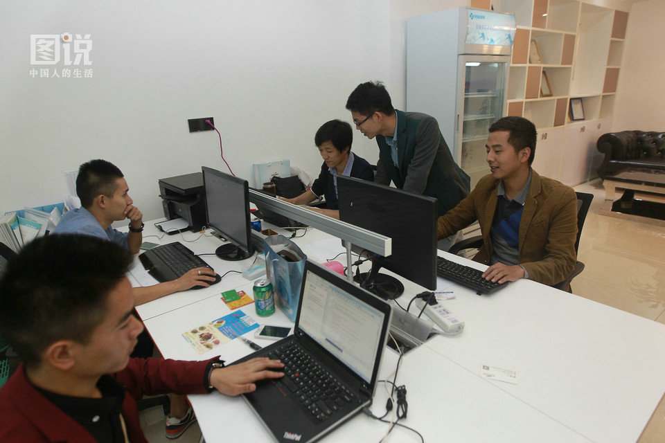 这是一家名叫仁合融通的高科技创业公司,专门从事国内行业软件产品研发、政府IT系统解决方案、互联网、移动互联网、大数据、系统集成及通信等综合IT信息服务提供商。2014年毕业后,24岁的蒙根(右二)加入到这家公司。
