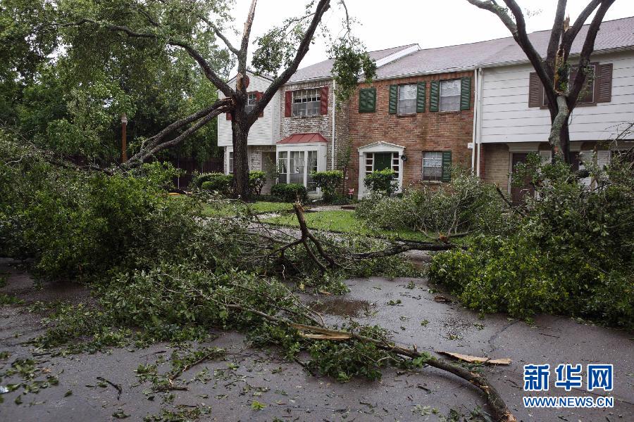 这是5月24日在美国休斯敦龙卷风受灾现场拍摄的被刮断的树木。当日凌晨,美国休斯敦部分地区遭受龙卷风袭击,造成十余间房屋受损,多人受伤。 新华社发(宋穹摄)