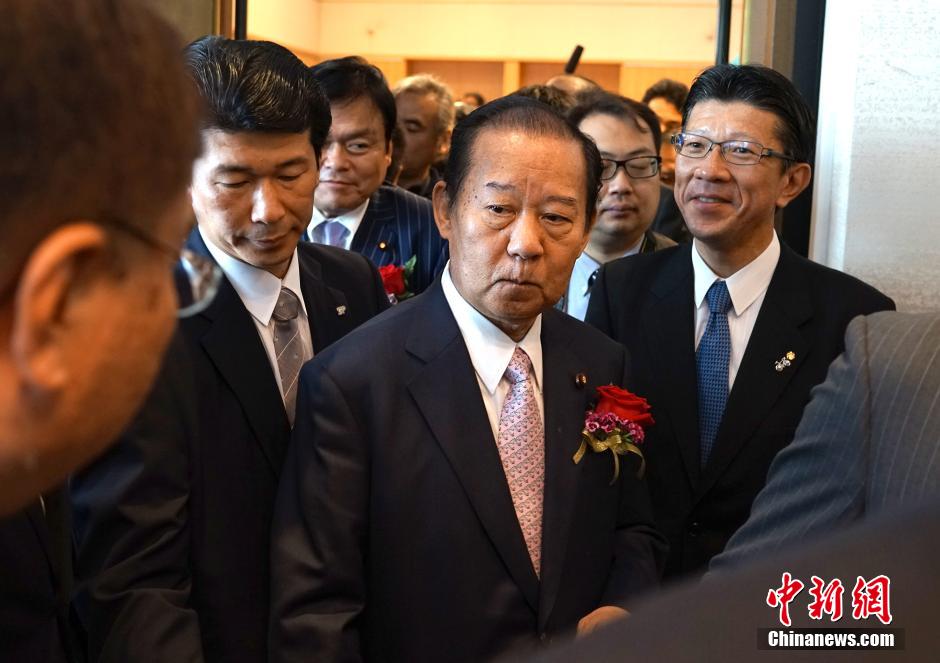5月23日,日本驻华大使馆举办“欢迎光临日本”大型商品、旅游推介招待会,日本自民党总务会长二阶俊博(中)出席。二阶俊博率领的三千名日本人组成的“日中观光文化交流团”于5月22日起对中国进行为期三天的访问。中新社发 侯宇 摄