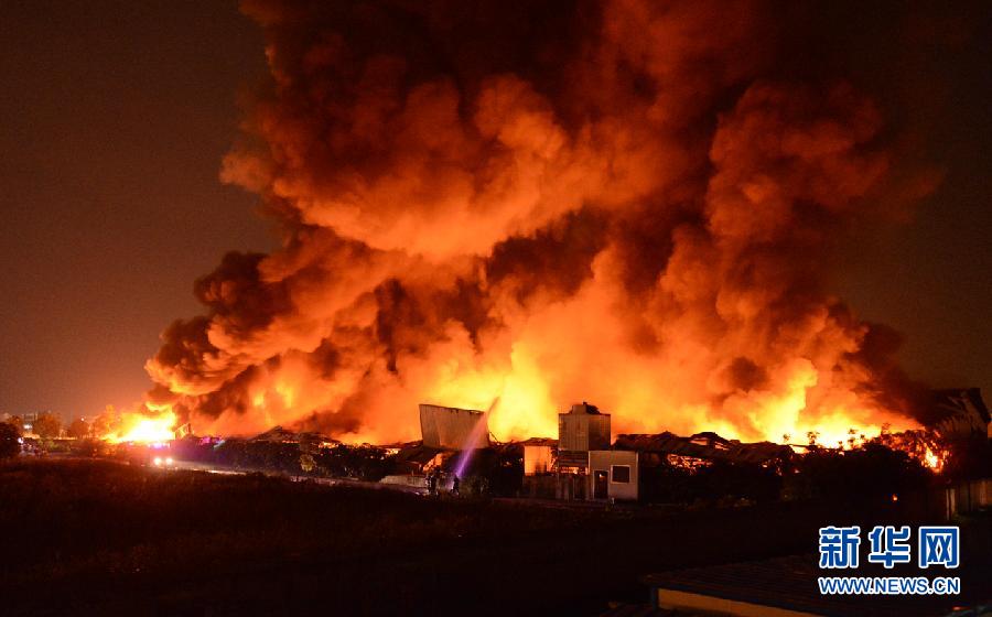 5月24日拍摄的火灾现场。当日17时40分许,位于江苏省丹阳市云阳街道振新路的鸿运科技有限公司注塑车间发生火灾。消防部门接报后立即赶至现场展开灭火作业。截至23时发稿时,火势已得到控制,初步判断过火面积上千平米,尚未有人员伤亡的报告。事故原因正在调查之中。新华社发