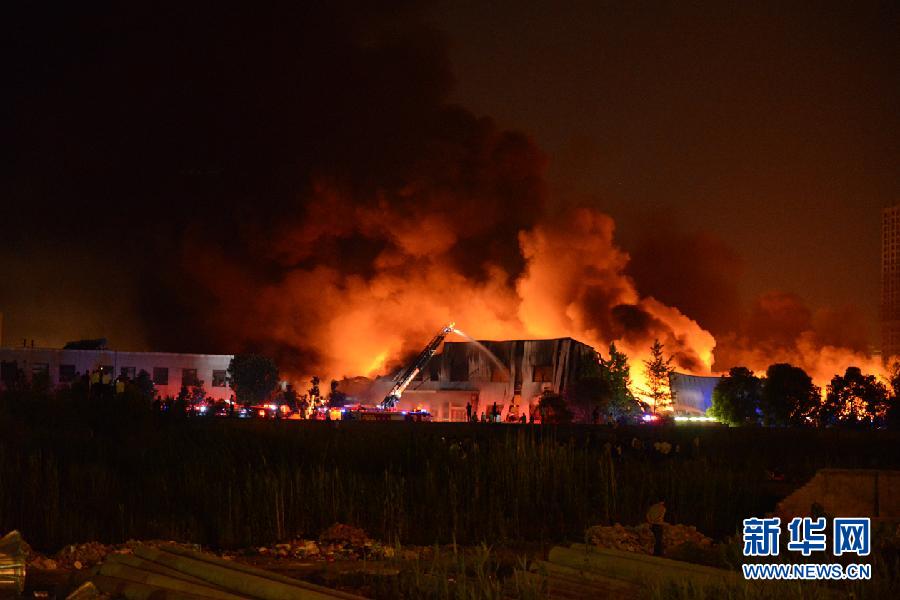 5月24日拍摄的火灾现场。当日17时40分许,位于江苏省丹阳市云阳街道振新路的鸿运科技有限公司注塑车间发生火灾。消防部门接报后立即赶至现场展开灭火作业。截至23时发稿时,火势已得到控制,初步判断过火面积上千平米,尚未有人员伤亡的报告。事故原因正在调查之中。新华社发