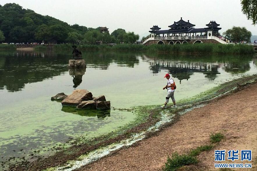 5月23日,一名游客在太湖鼋头渚景区的岸边游玩。