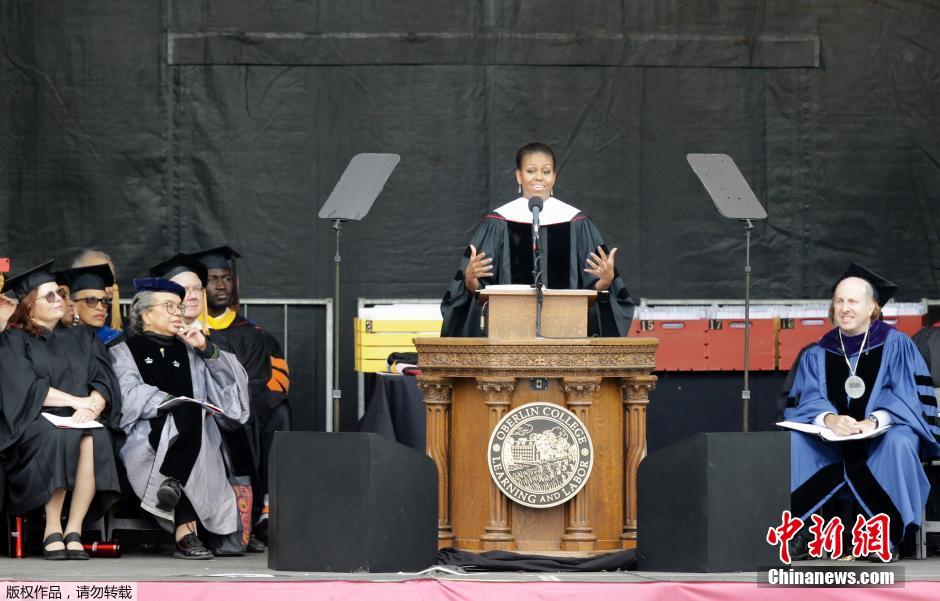当地时间2015年5月25日,美国俄亥俄州,美国第一夫人米歇尔被欧柏林学院授予人文学荣誉博士学位。