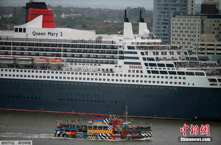 当地时间2015年5月25日,英国利物浦,玛丽女王2号、维多利亚女王号、伊丽莎白女王号邮轮首次齐聚默西河面上,庆祝航运公司丘纳德轮船公司创办175周年。