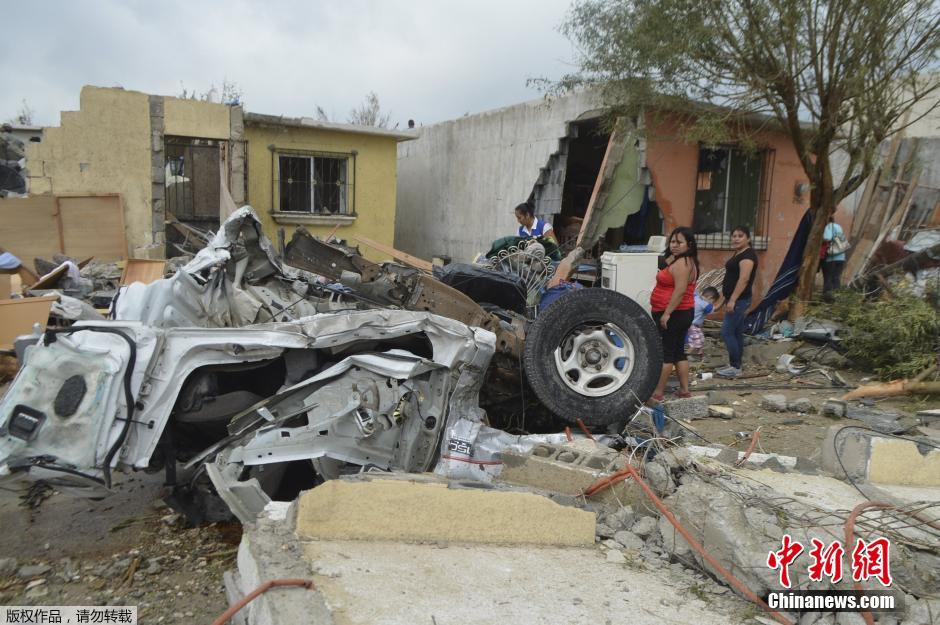 墨西哥遭龙卷风袭击 汽车上墙房屋被毁