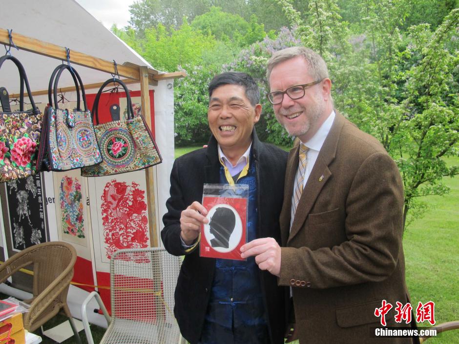 5月18日-24日,“柏林亚太周 感知中国”活动在德国首都柏林举办。由北京市政府新闻办和东城区共同主办的“地坛文化庙会”成为柏林亚太周最大亮点。图为中国高级工艺美术师徐阳为参观者现场制作剪纸像。韩旭 摄