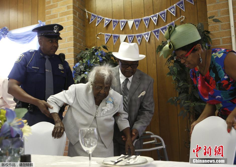 当地时间2015年5月24日,美国密歇根州因克斯特市,杰瑞兰·泰利今天度过了她人生第116个生日。泰利是已知的最长寿老人。1899年5月23日,泰利出生在佐治亚州。