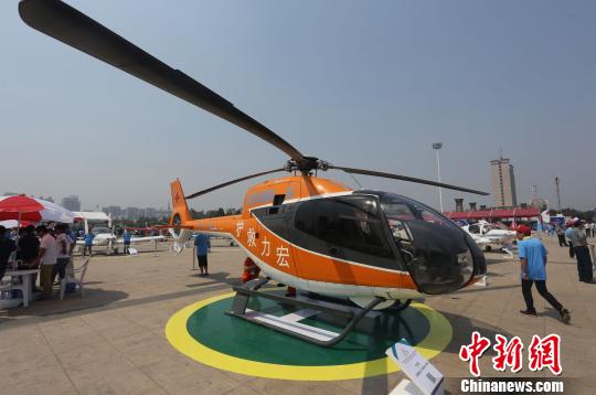 5月25日,第七届安阳航空运动文化旅游节航空装备博览会现场展示的直升机。 杨正华 摄