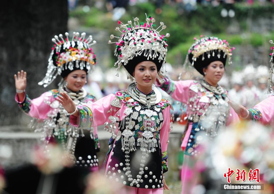 湖南凤凰举办苗族“四月八”跳花节 万人共舞苗家舞