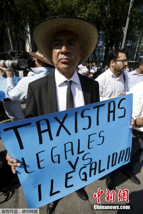 当地时间2015年5月25日,墨西哥墨西哥城,数千出租车司机游行抗议Uber公司的不正当竞争,要求政府对Uber采取行动。