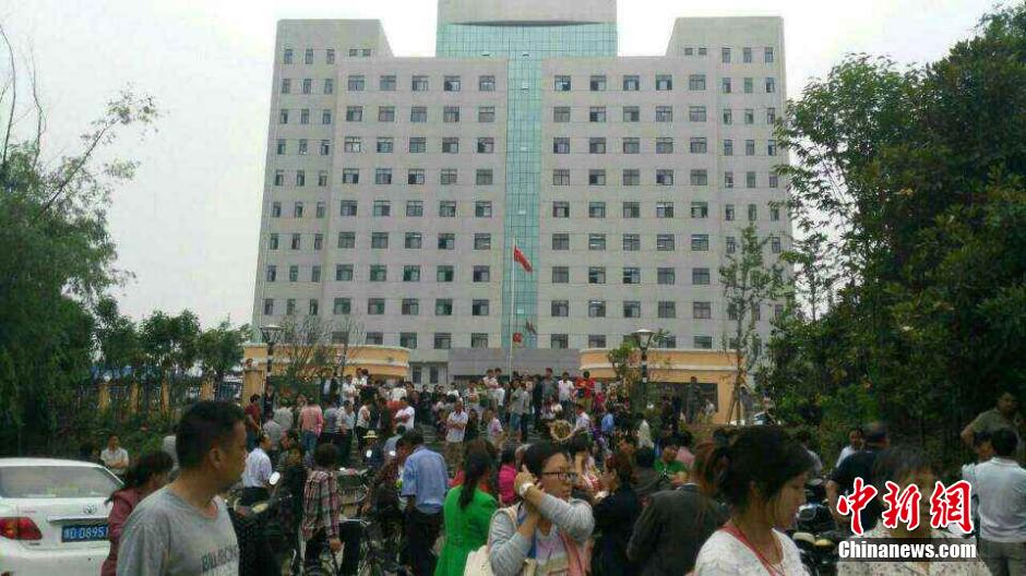 5月26日上午,家属们聚集在事发现场外围,等待善后处理情况。董飞 摄