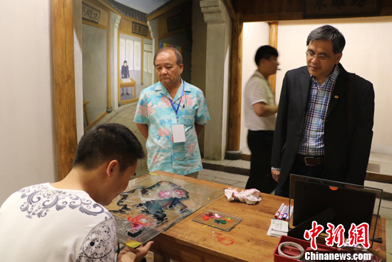5月21日,在“两岸新媒体发展论坛暨两美温州”采风活动期间,20多位台湾媒体人走进了浙江温州非遗馆,近距离感受了温州古老的手艺。 中新社发 李佳赟 摄
