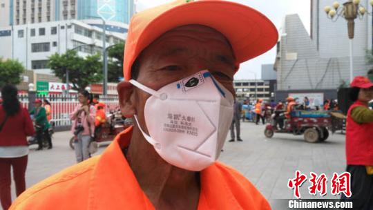 22日,甘肃庆阳市文明办、志愿服务联合会和“大爱清尘”基金庆阳工作站联合开展“关注呼吸健康,共建美好庆阳”主题活动。65岁的环卫工邵国强平常工作时没有戴口罩的习惯,听了呼吸健康知识后明白了防尘口罩的重要性。 李馨怡 摄