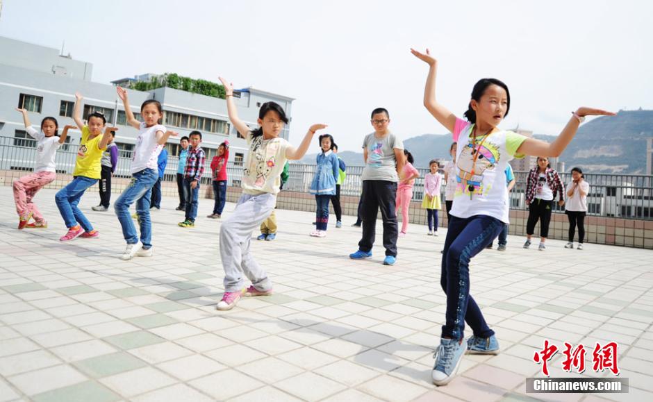 5月25日,兰州一小学校园内敦煌拳术吸引学生们练习。据校方介绍,该学校从2013年开始把敦煌拳术引入校园,由敦煌拳传承人武术名家王建中、王建国、王效强担当老师为小学生们教授拳法,以此来培养学生的“文武兼修”能力。敦煌拳是敦煌武艺各套路的母拳和基础,是以莫高窟壁画经变图中的飞天散花等为基本内容,动作充分体现了式势别致等特点,它以浓郁的东方神韵和其独有的风貌立于全国武林丛中,别树一帜。图为小学生练习敦煌拳。杨艳敏 摄