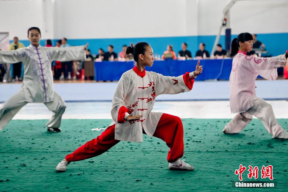 5月26日,2015年全国传统武术比赛在福建邵武鸣锣开赛,各路高手齐聚张三丰故里,切磋武艺。据悉,本次比赛共有来自北京市、天津市、黑龙江省、上海市、新疆维吾尔自治区等23个省(市)、自治区100支代表队的800多名运动员参加比赛,参赛人数创历史新高。中新社发 李南轩 摄
