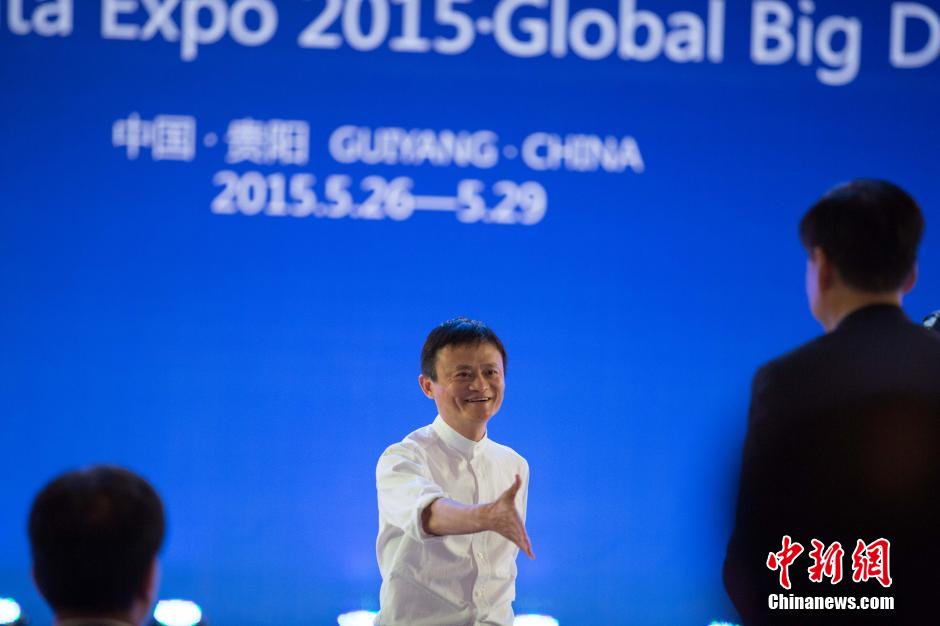 5月26日,2015贵阳国际大数据产业博览会暨全球大数据时代贵阳峰会在贵阳正式开幕,海内外官、产、学、研等千余名业界精英将参与展览展示、峰会论坛和创新大赛等22场分论坛和28个相关活动。图为阿里巴巴集团董事局主席马云。中新社发 贺俊怡 摄