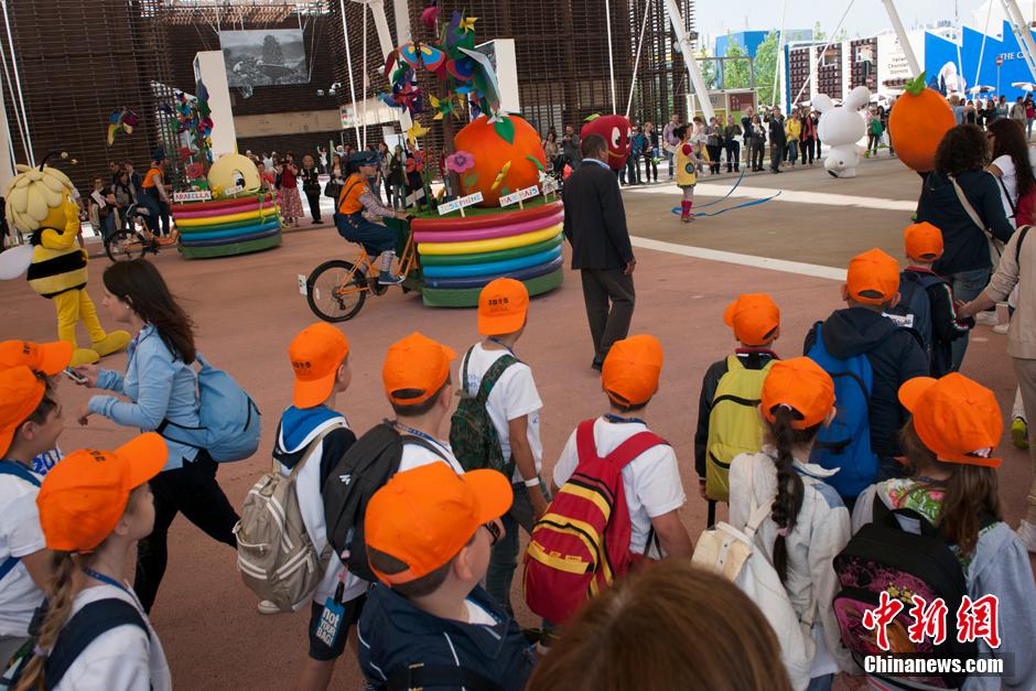 图为一队小朋友被游行表演的队伍所吸引。 中新网记者 李卿 摄