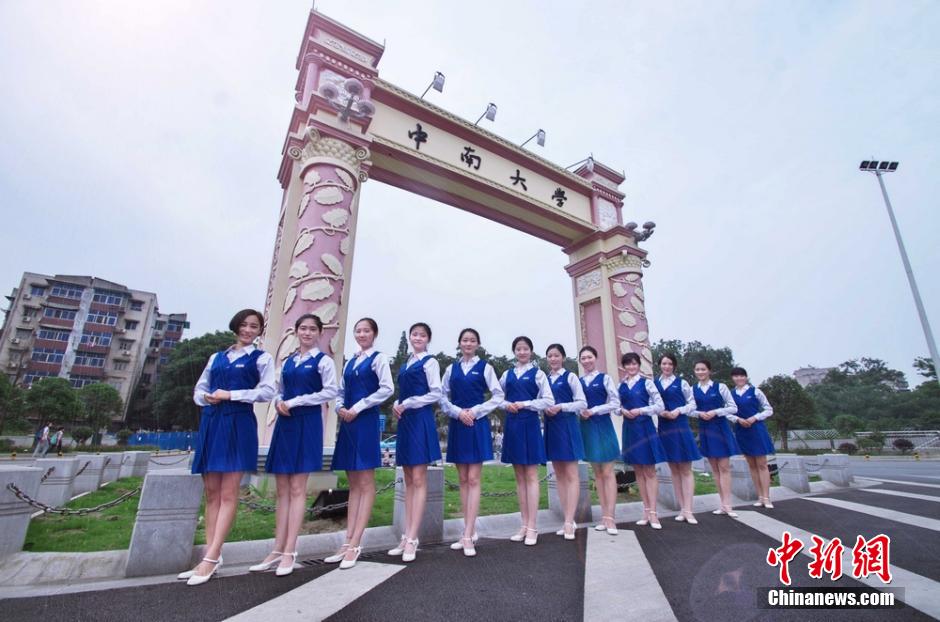 图为中南大学礼仪队姑娘身着工作制服合影。 卢柏安 摄