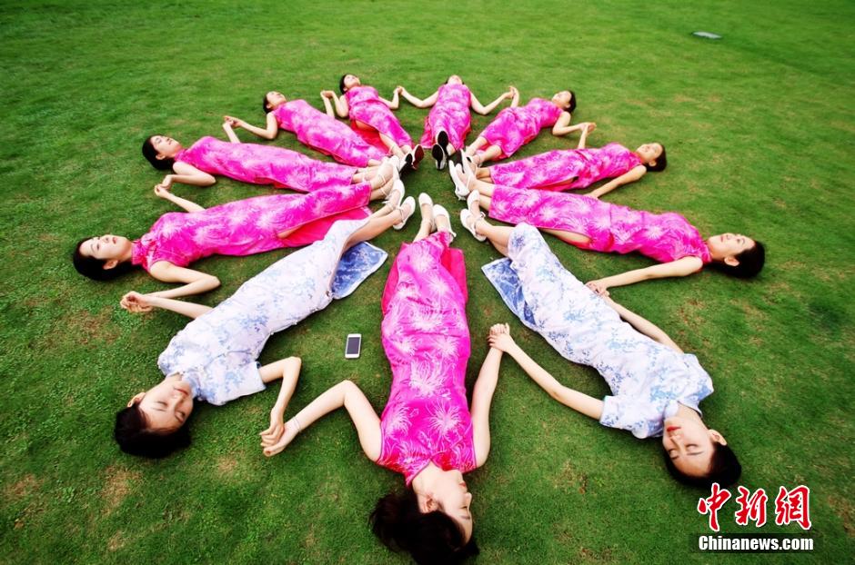 图为中南大学礼仪队姑娘身着旗袍合影。 卢柏安 摄