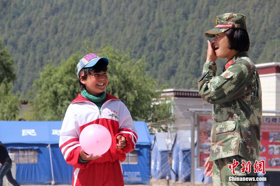 5月31日,西藏公安边防总队吉隆边防检查站官兵与孩子们做游戏。 胡俊浩 摄
