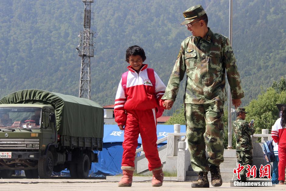 5月31日,西藏公安边防总队吉隆边防检查站的官兵带领孩子参观警营。 胡俊浩 摄