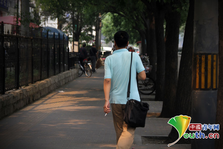 路边吸烟的行人。中国青年网记者 孟畅摄