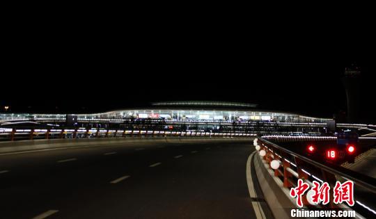 28日零点,新建的烟台蓬莱国际机场正式启用。已经使用了31年的烟台莱山国际机场27日晚上12点正式停止运营民航业务。图为烟台蓬莱国际机场夜景。 张玉雷 摄