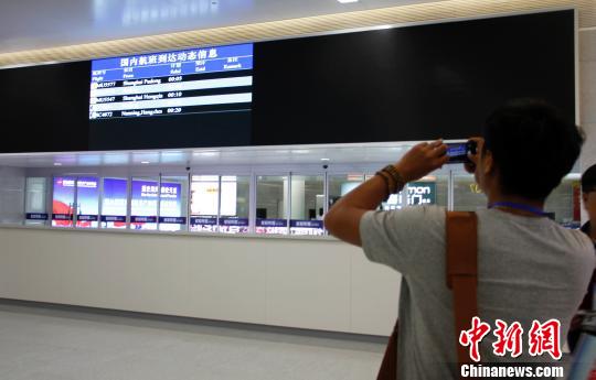 28日零点,新建的烟台蓬莱国际机场正式启用。已经使用了31年的烟台莱山国际机场27日晚上12点正式停止运营民航业务。图为旅客在烟台蓬莱国际机场拍照留念。 张玉雷 摄