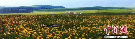 每年的5月下旬至6月中旬,“中国最美草原”新疆那拉提草原山花遍开,野郁金香、野百合等多种野花点缀在辽阔的草原上,与远处的雪山和近处的哈萨克毡房形成美妙的画卷,成为一年中最美的季节。 郑伟强 摄