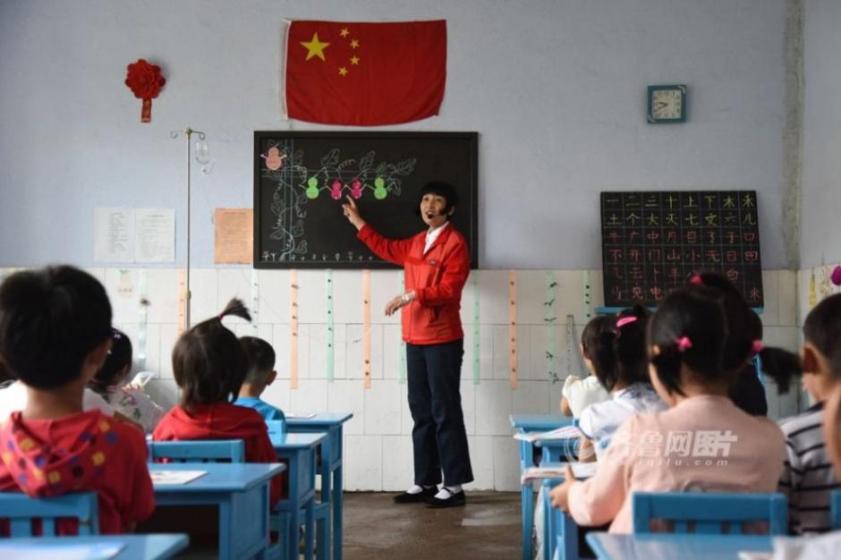 2011年春,李霞被查出了乳腺癌,经过八个疗程的化疗后,一头秀发全部脱落,但病魔并没有被击退,2013年癌细胞又扩散到颈部淋巴,她再次躺倒在手术台上。手术后她顾不上好好疗养,重新走上讲台。她身体羸弱,很容易感冒发烧,几乎天天靠打点滴支撑生命。她发音细微,为了让孩子们听到她的说话,她每天佩戴着扩音机。图为幼儿教师李霞挂着吊瓶,给孩子们上课。齐鲁网发 杜昱葆 摄 图片来源:齐鲁网