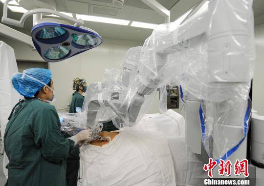 这是吉林省引进的首个“机器人医生”,其拥有的4只机械臂可灵活运用手术刀、剪刀、镊子、腹腔镜等工具。据介绍,由“机器人医生”主刀进行手术,不仅更加精准,而且所需医护人员数量也大为减少。