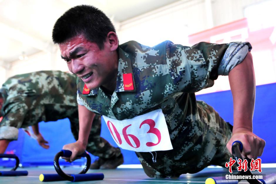 图为选手正在进行俯卧撑比赛。范昕羽 摄