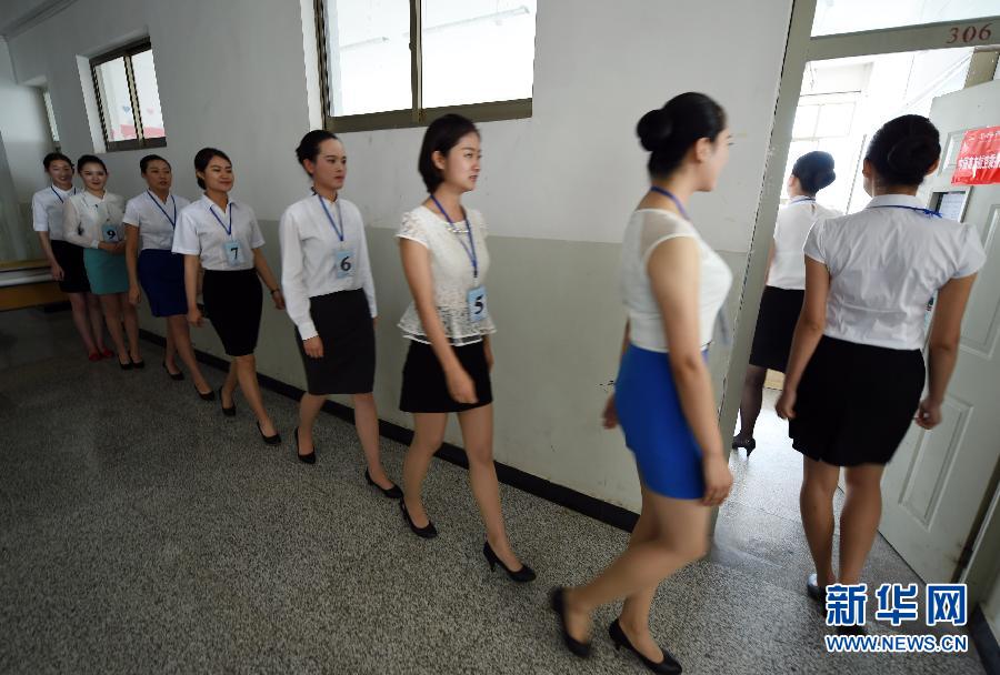 6月9日,空乘应聘者排队进入面试区。新华社记者范培珅摄