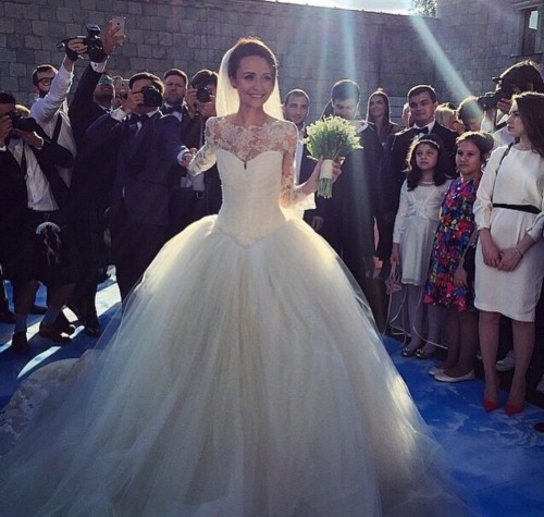 女主角婚纱正面照。