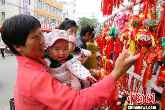 端午佳节临近,甘肃轩辕故里清水县传统手工荷包香飘街头。雷金锋 摄