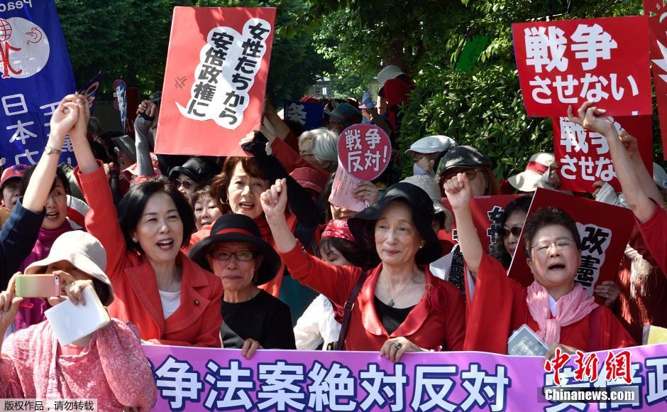日本数千示威者组成人链包围议会 抗议政府安全政策