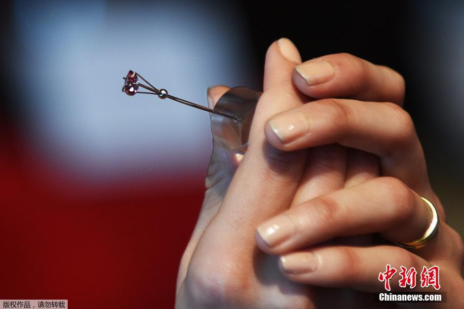 图为1.2克拉的顶级艳彩红钻。这些顶级钻石通常会在参与拍卖前先在招标会上展出。