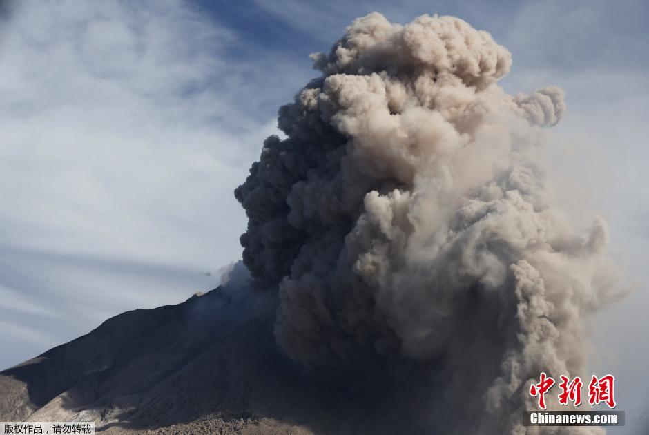 当地时间2015年6月26日,印尼卡洛,印尼锡纳朋火山持续喷发,周边村落上万民众紧急撤离。