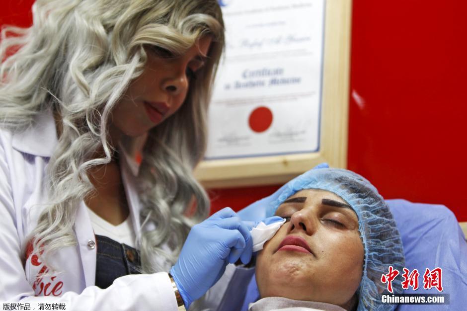 当地时间2015年6月2日,伊拉克巴格达,一名女性在美容整形诊所内接受注射。