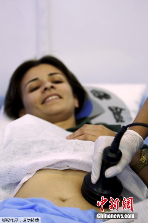 当地时间2015年6月8日,伊拉克巴格达,一名女性在美容整形诊所内接受减肥塑形。