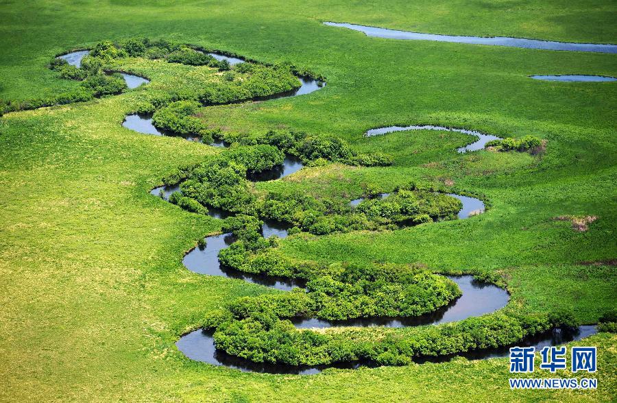 这是南瓮河湿地的一处航拍景观(6月18日摄)。 新华社记者 王凯 摄