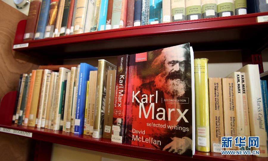 这是6月25日在英国伦敦马克思纪念图书馆内拍摄的书架。