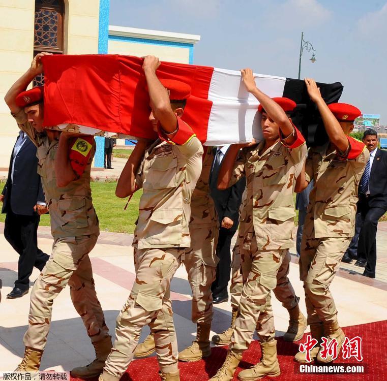当地时间2015年6月30日,埃及开罗,埃及国家检察官Hisham Barakat在29日的汽车爆炸中丧生,葬礼举行。埃及总统塞西和政府官员出席葬礼。