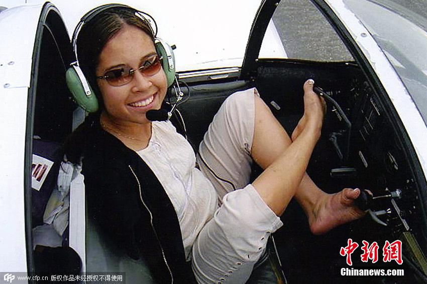 6月30日消息,来自美国亚利桑那州的32岁女士Jessica Cox天生残疾,没有双臂。但她拒绝安装假肢,多年来不但可以像正常人一样生活,而且还学会了包括冲浪、潜水、开飞机、弹钢琴在内的多种技能。