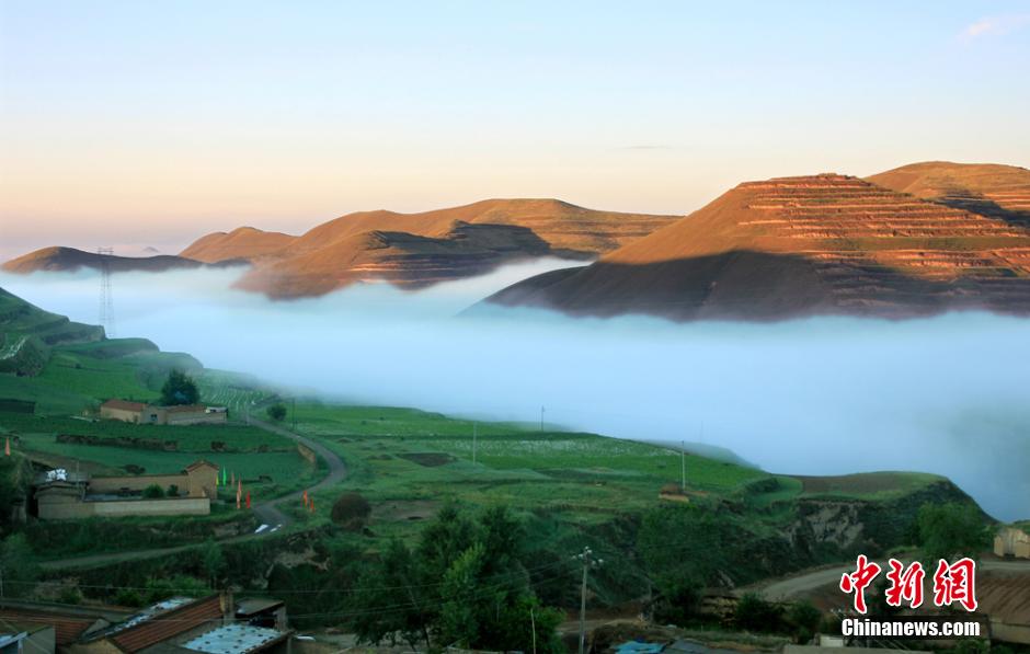 6月30日,甘肃省永登县通远乡边岭村“云海”如画。连日来,当地普遍降雨,浓重的大雾弥漫在黄土高原的通远乡,大山深处的宁静和原生态的美景令人心旷神怡。这里雨过天晴后天高云淡,云雾缭绕,大地犹如一幅幅绝美的水彩画,让人陶醉。林志国 摄