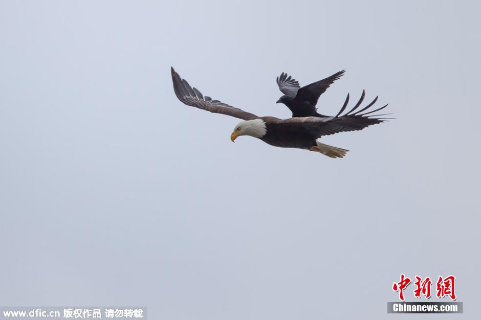 2015年7月1日报道,美国业余摄影师Phoo Chan拍下了一辑罕见有趣的画面。一只胆大的乌鸦停在正在觅食的秃鹰背上想搭个顺风车,这一过程只持续了短短几秒钟,过后两个家伙便各自分飞。