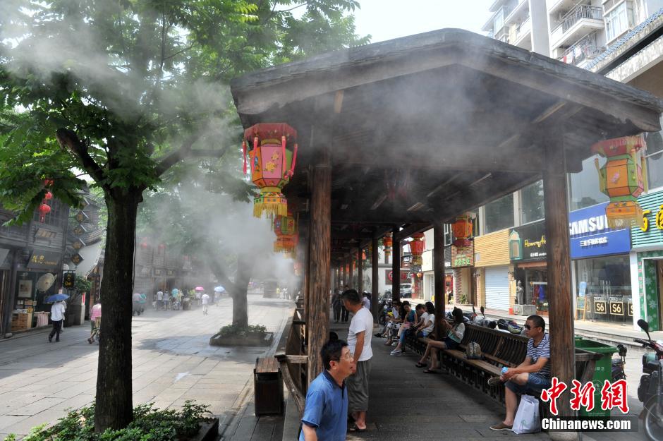 福州高温降临 三坊七巷喷雾为游客送来清凉